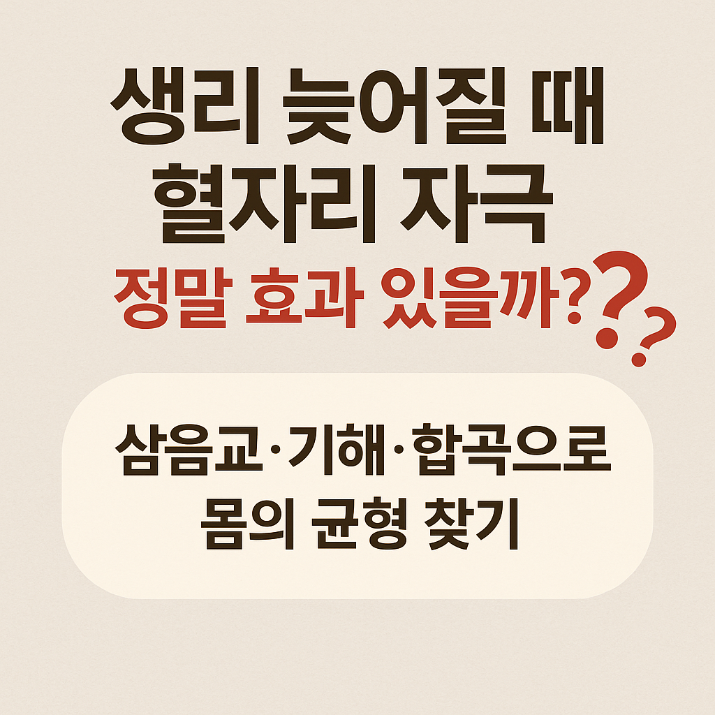 이번 글에서는 생리 늦어질 때 혈자리가 왜 도움이 되는지, 대표 혈자리인 삼음교, 기해, 합곡을 어떻게 자극하면 되는지, 그리고 실제 효과를 체험한 후기를 함께 정리해드립니다.