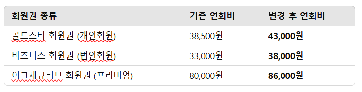 📌 골드스타 vs 비즈니스 vs 이그제큐티브 회원권 비교표 (2025년 5월 인상기준)